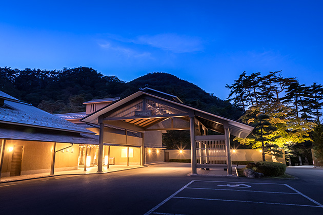 贅をつくした和と洋の空間で「寛ぐ」地産地消海の幸や山の幸を「食す」自家源泉とろとろの湯に「浸かる」四季を感じる園内を「愉しむ」佳松園でのご婚礼で人生を「彩る」