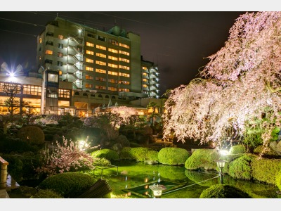 - 創業300余年、桜並木に囲まれた風雅な旅館。四季折々の風景が広がる大浴場への空中廊下、そして緑が眺められる露天風呂など自然を満喫。